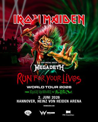 Iron Maidens Arenashow in Hannover ist Teil der nächsten Etappe ihrer dieses Jahr gestarteten Run For Your Lives World Tour, mit der die Band aktuell ihr 50-jähriges Bandjubiläum zelebriert und die schon jetzt als ihre bisher spektakulärste Konzertreise gilt. 2026 wird die Band zudem bei zahlreichen Sommerfestivals auftreten, darunter Rock Am Ring und Rock Im Park.
