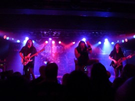 Doch bevor es soweit war, spielte noch eine deutsche Vorband, deren Namen ich leider nicht mitbekam, da der Sänger diesen nicht laut genug nannte. Ich befürchtete zunächst das Schlimmste, als ich die Burschen sah, die zudem noch reichlich bemalt auf die Bühne kamen. Jedoch waren sie musikalisch eher soft unterwegs und boten solide Hardrock-Kost mit deutschen Texten für die Ohren. Um halb 9 war auch schon Schluss und die Umbauarbeiten für den Hauptact wurden eingeleitet.