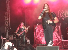 Aber nun zu Iced Earth, dem heimlichen Headliner dieses Festivals. Für mich war es der Augenblick, auf dem ich ganz besonders hin gefiebert habe – zumal man mit „Dystopia“ wohl eines der besten Heavy Metal Alben 2011 veröffentlicht hat. Nun also die Feuertaufe des neuen Sängers Stu Block in Geiselwind, der aber von seiner vorigen Band Into Eternity schon wusste, wie man die Meute anzuheizen hat. So dauerte es auch beim ersten Song „Dystopia“ nicht lange und die Eventhalle entpuppte sich als wahrer Hexenkessel. Tight wie eh und je parierten Jon Schaffer und seine Mannen den Auftritt und spielten erfreulicherweise viele alte Hits der Band (darunter auch standardgemäß als Rausschmeißer die Hymne „Iced Earth“). Ein wirklich megageiler Auftritt von Iced Earth, die man einfach zu den besten Metal Bands dazuzählen muss – besser kann es eigentlich gar nicht mehr sein und wenn man sich die Reaktionen im Publikum ansah, waren ganze viele Metalheads der gleichen Meinung. [chris]