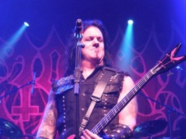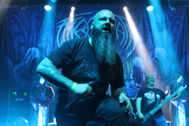 Von einem meiner Schreiberlinge bekam ich Triptykon als Liveerlebnis ganz besonders ans Herz gelegt, nachdem diese Band um Gabriel Fischer auch auf dem diesjährigen Rock Hard Festival mit von der Partie war und dort wohl mächtig für Furore sorgte. Man sagte mir, danach müsste man keine andere Black Metal Band mehr live sehen, und nach diesem Auftritt in der Eventhalle muss ich sagen, dass der gute Herr nicht übertrieben hat. Triptykon kommen ganz besonders live richtig düster und bedrohlich rüber, man muss es wirklich live erlebt haben, denn während die anderen beiden Gitarristen ordentlich ihr Haar hin und herwerfen, steht Gabriel Fischer ziemlich ruhig auf der Bühne und durchbohrt mit seinen schwarzuntermalten Röntgenaugen die Seelen der anwesenden Fans. Nur wenige Worte zwischen den Songs waren ihm zu entnehmen, darunter auch „Frohe 'Leihnachten' – nachdem man uns Heiden auch dieses Fest noch weggenommen hat". Grandios. Ansonsten konzentrierte man sich souverän auf sein Set und natürlich durfte auch „Circle of the tyrants" nicht fehlen. Triptykon waren definitiv eines der Highlights an diesem Tag. [chris]