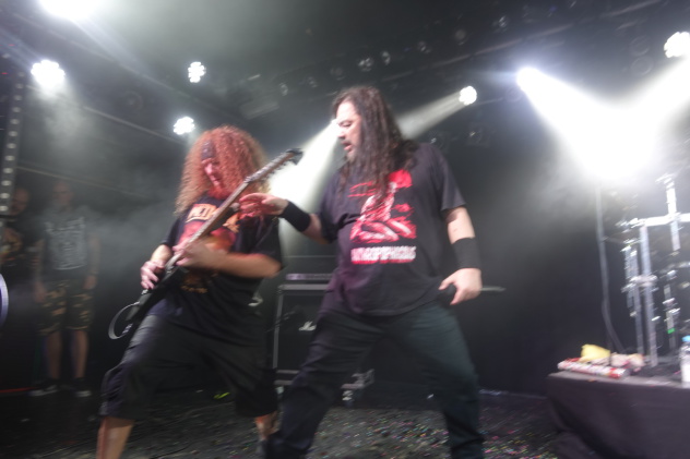 „Hell Awaits“, „South Of Heaven“, „War Essamble“, „Dead Skin Mask“, „Necrophobic“ oder auch „Altar Of Sacriface“, sowie „Reign In Blood“ wurden in Hochform vorgebracht und huldigten an diesem Abend