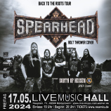 Als Hauptact standen dann Spearhead auf der Bühne. Bolt Thrower Tribute Band der Extraklasse. Ich durfte vor nicht allzu langer Zeit Spearhead schon einmal Live erleben, aber diesmal legten sie zu ihrem damaligen starken Auftritt noch eins drauf. Es war der absolute Abriss. Die Jungs um Sänger Johannes Bergmann legten den Saal in Schutt und Asche. Ein wahrhaftiges Feuerwerk, die das Original nicht viel besser dargeboten hätten. Voller Spielfreude, wie schon zuvor South Of Hessen brachten Spearhead ihre Songs zu Gehör. Die Meute tobte, bangte wie Teufel komm raus, es war eine wahnsinns Stimmung. Stücke wie „Cenotaph“, „WarMaster“, „For Victory“, „Mercenary“ oder auch „World Eater“ wurden zelebriert und wie – sehr geil, einfach nur sehr geil. Vielen Dank an beide Bands, den Leuten von der Live Musi-Hall für einen absolut geilen Abend mit bester Live-Musik. (wolle) (Fotos - wolle)