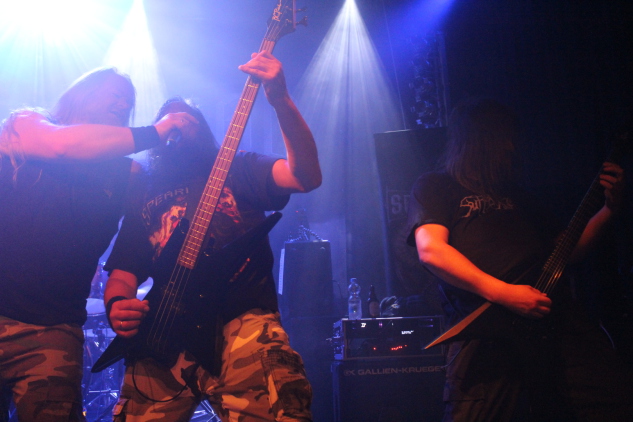 Nach kurzer Umbaupause waren dann Sterbhaus aus Schweden an der Reihe. Mit den beiden Scheiben der Band war ich noch nicht so ganz eins. Klingt nicht schlecht, aber haut mich nicht um. Live ging es einen Tick besser zu Werke. Death / Thrash mit stampfenden Riffs ohne auf irgendwelche Trends zu horchen. Weder old noch new school. Leider gab es hier und da aber kleine Ausfälle der linken Box, die aber von der Technik sofort wieder zu behoben wurden. Daher gab es keine großen Probleme. Auch Sterbhaus gingen nach knapp 30 Minuten wieder von der Bühne und mittlerweile war der Bruch doch schon recht gut gefüllt.