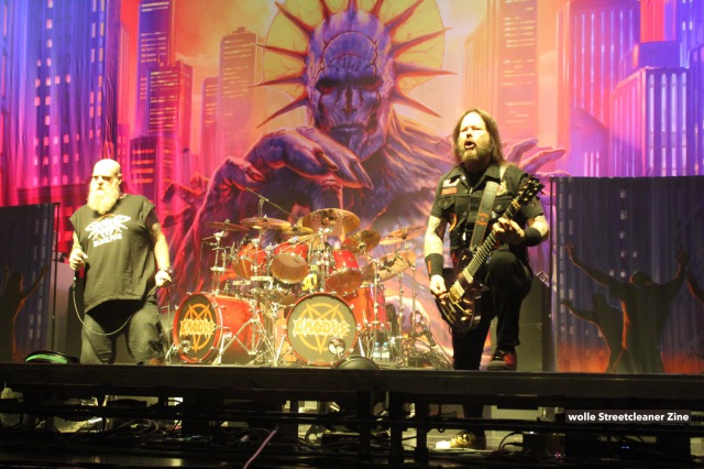 Als nächstes standen dann Exodus mit Sänger Rob Duke, sowie Mastermind Gary Holt, um ihrem Thrash Metal auf der Bühne zu zelebrieren. Die aus Kalifornien kommende Truppe legte los, wie es sich eben