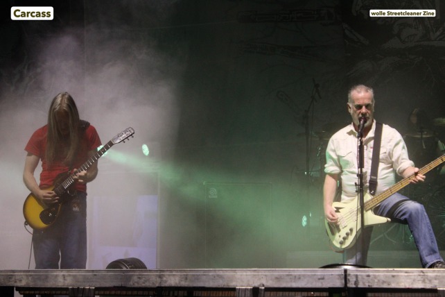 Carcass, die ja eher für Death Metal mit einigen melodischen Einheiten stehen, waren nun an der Reihe. Die Herren um Bill Steer boten eine starke, handwerkliche Leistung da, aber die Stimmung war