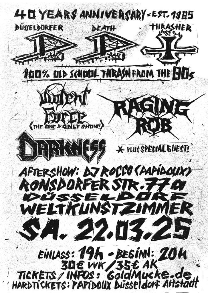 Gefeiert wurde hier nicht nur ein geiles Konzert, sondern auch 40 Jahre DDT – Düsseldorfer Death Thrasher. 1985 hat dies alles hier angefangen, als die