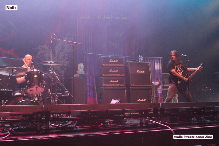Eröffnet haben dem Abend pünktlich um 18:30 Uhr Nails. Die Jungs mit ihrem kompromisslosen Hardcore-Thrash sorgten schon als Opener für ein Feuerwerk und Freude bei so manchem Fan vor der Bühne. Mit